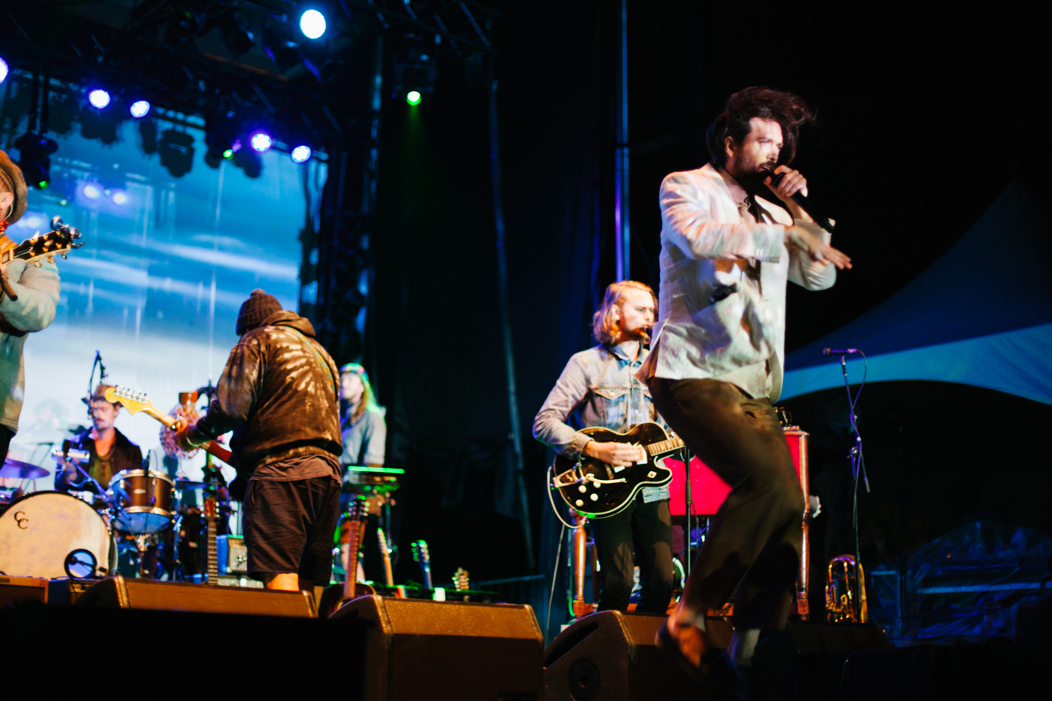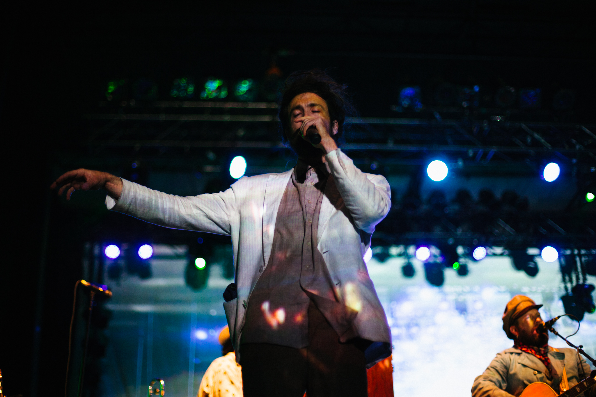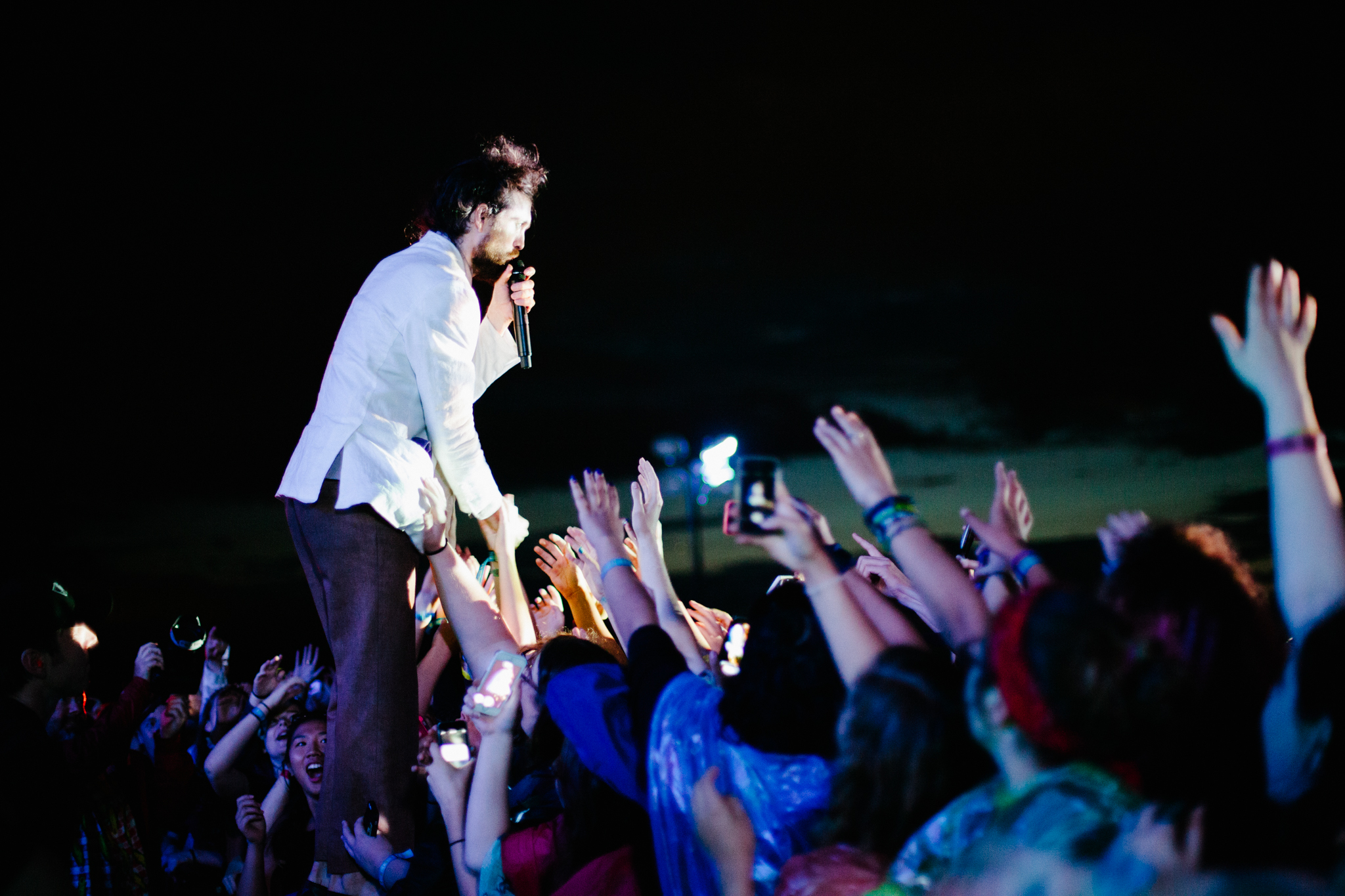Los Angeles, California is the birth place of psychedelic-folk ensemble Edward Sharpe & the Magnetic Zeros. Their 60s-inspired sound and collective spirit drew a packed crowd for the performance. Originally the group was fronted by Alex Ebert (a.k.a Edward Sharpe) and Jade Castrinos, but in recent years the vocal pair broke up, and left Ebert with the lead vocal duties. Performing hits from each of their highly-acclaimed albums, the performance ended with their breakthrough hit “Home”. Traditionally in the song, there is a story of how Ebert and Castrinos fell in love, but due to their split, the lead singer made his way into the crowd to find someone else’s story to share. As he swerved his way through the crowd, he discovered a young couple standing together in hopes of hearing a story of love; Erbet landed on more than just a story: a continuation and initiation of the couple’s next chapter through an impromptu marriage proposal.