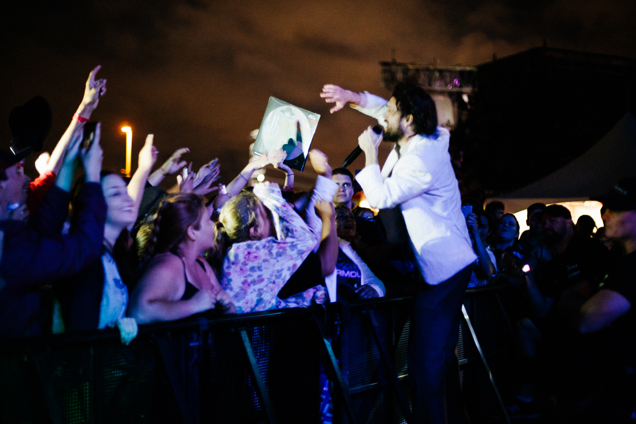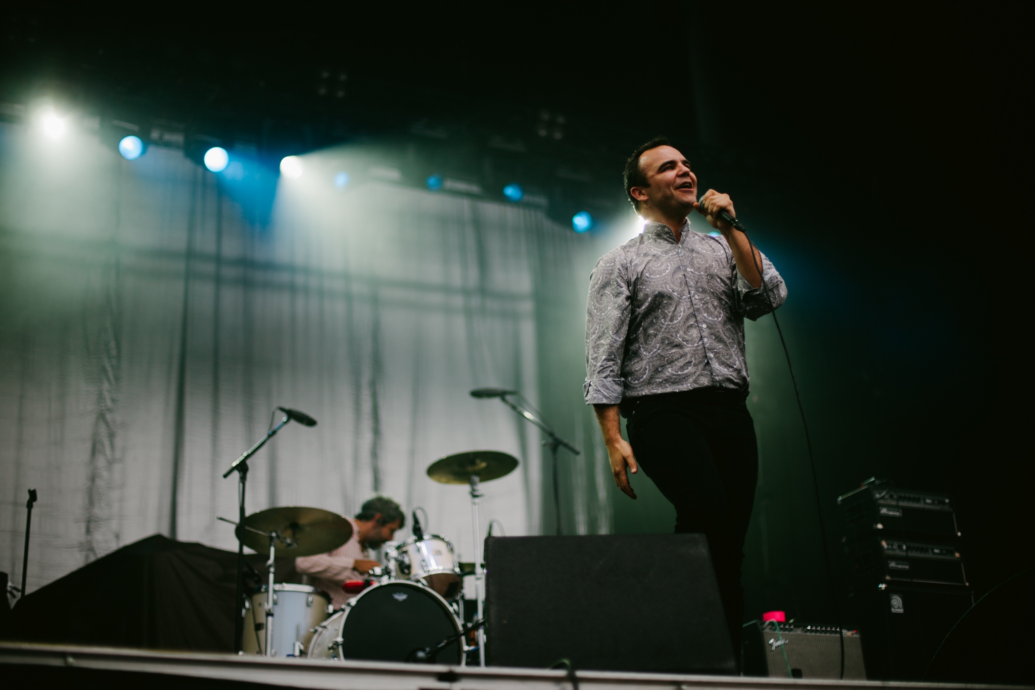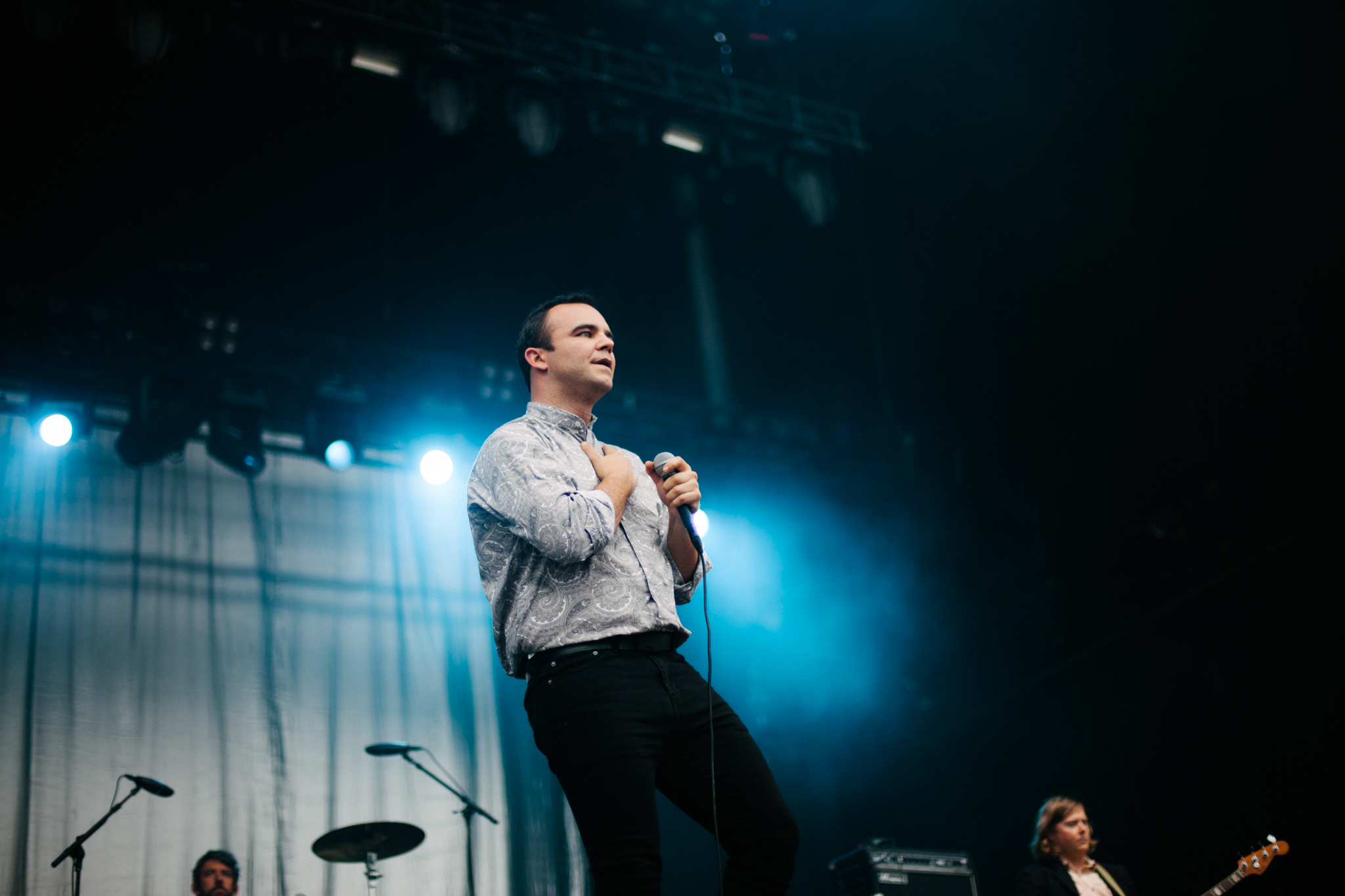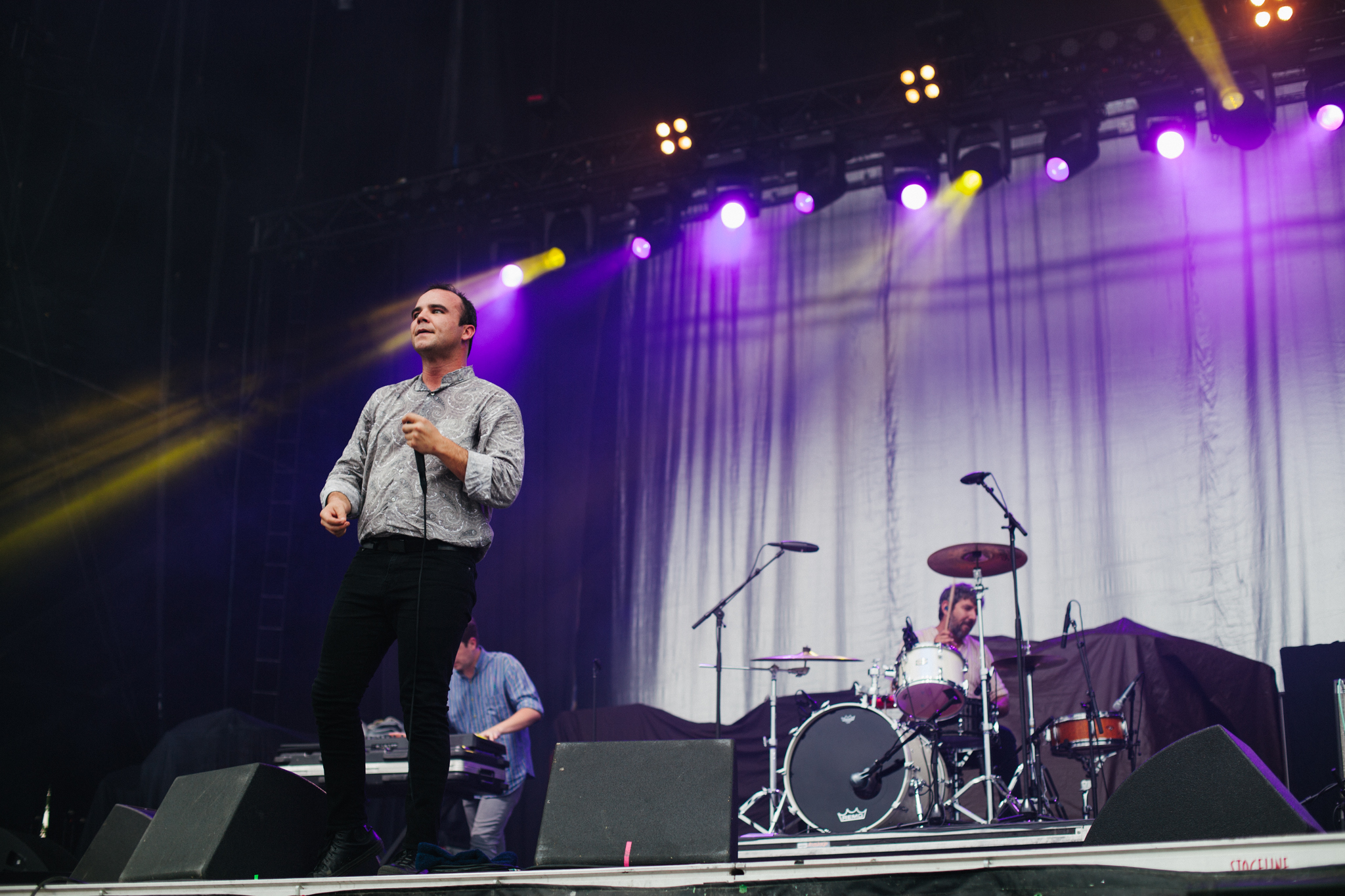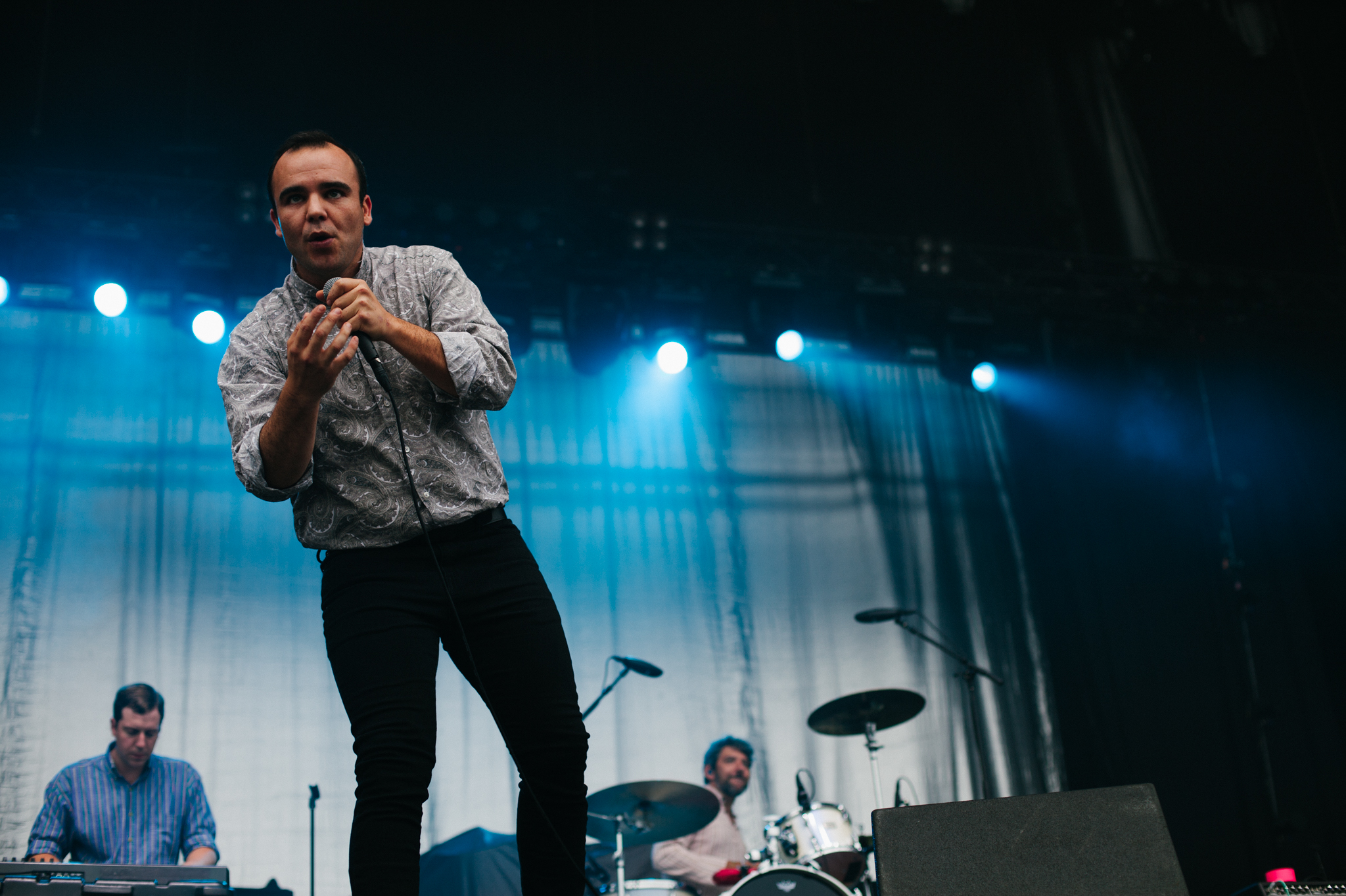 Formed almost 10 years ago, Maryland synth pop group Future Islands swooned the crowd at Ottawa Bluesfest with their enthralling music and captivating performance. Amongst the chromatic backdrop, below the darkening sky, and looming rain cloud, the dynamic style of their music shown through the contrasting setting.